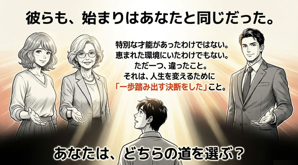 みんな最初は不安でした。でも、一歩踏み出したから人生が変わったのです。