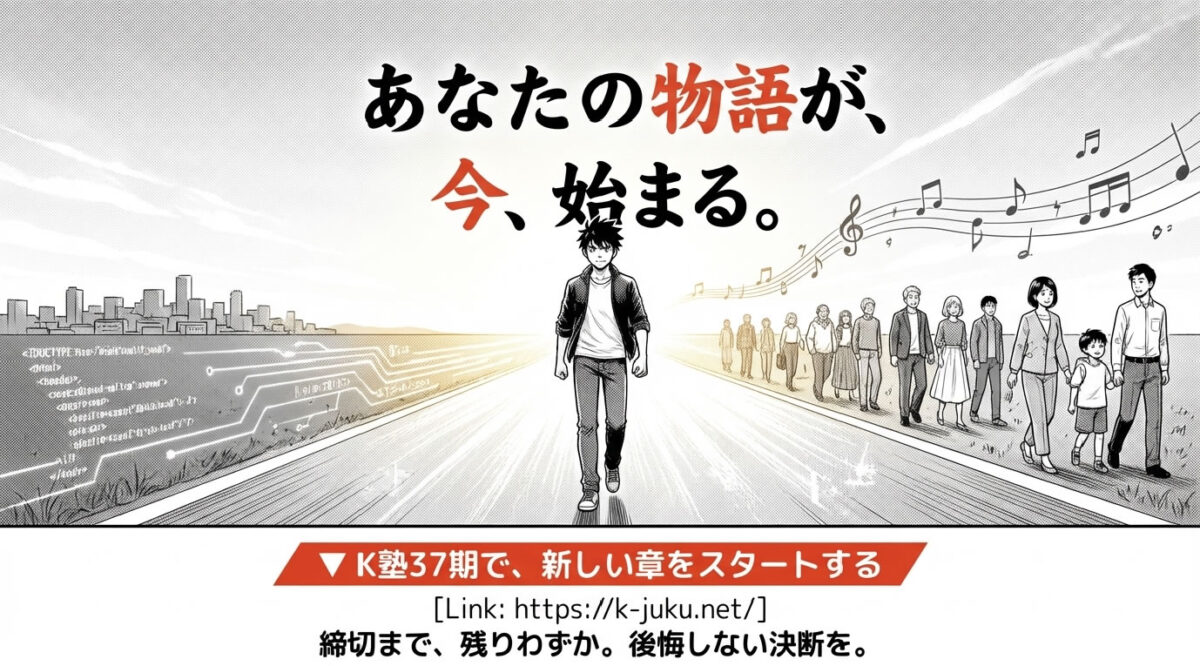 ▼ K塾37期で新しい人生をスタートする 👉 今すぐ公式サイトで詳細をチェック